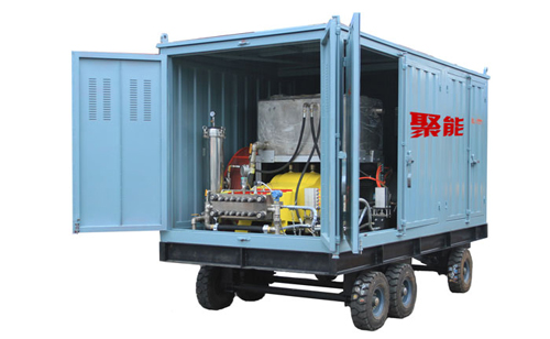 JN280 structure type of super high pressure plunger pump valve group is the industry's most advanced form of structure, outer valve group, very good solve the cracking problem of traditional pump head, pump complete set configuration includes high pressure pumps, gearbox, diesel engine, air pump, storage tanks, water booster pump, filters, water tanks, fuel tanks, toolbox, displays the pressure gauge and pneumatic pressure regulating valve and ultrahigh-pressure hose, etc. To ensure safe use in high-pressure pump diaphragm type relief valve is set by the hydraulic end, intelligent digital meters, configured with a dedicated control system can realize the overpressure stop, stop, stop short of oil and water shortage alarm function, can also according to user requirements and conditions, the oil temperature alarm and other intelligent control function. Air tank equipped with directional control valve, safety valve, drain valve to ensure the unit functions such as implementation and security unit.
