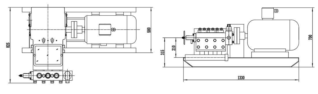 注水泵的泵頭兩端, 一端安裝溢流閥,另一端安裝節流閥或壓力表及高壓膠管接頭,既能調整系統工作壓力, 又能限制泵不超過額定壓力。使用安全可靠,自成系統,使用極為方便。